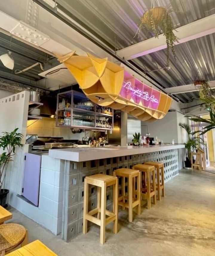 和牛100%のこだわり抜いたアメリカンスタイルのハンバーガー、アサイーボウル、旬なフルーツを使ったスムージーを提供。植物が溢れるリゾート感のある20席の店内と12席のテラス席。